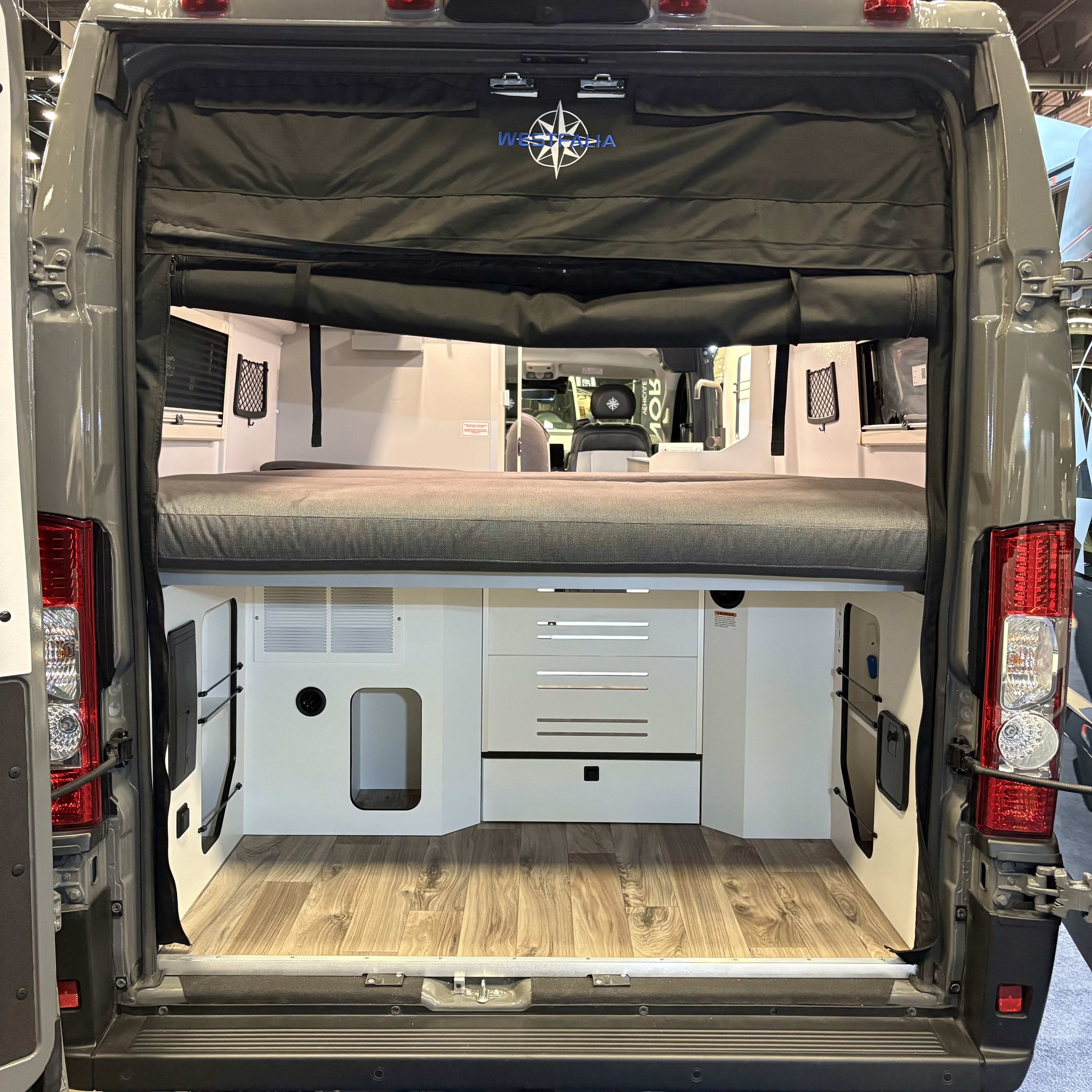 Embarquez pour une aventure inoubliable avec le tout nouveau Westfalia Wave. Le véhicule est équipé de sièges convertibles brevetés, d'un toit ouvrant spacieux et une section arrière adaptable en lits jumeaux, doubles ou queen, offrant la possibilité de dormir jusqu'à six personnes. Il y amplement de rangement dans le véhicule pour y installez facilement des équipements plus grands comme des planches à pagaie et des vélos de montagne dans l'espace polyvalent du coffre et de l'allée.
